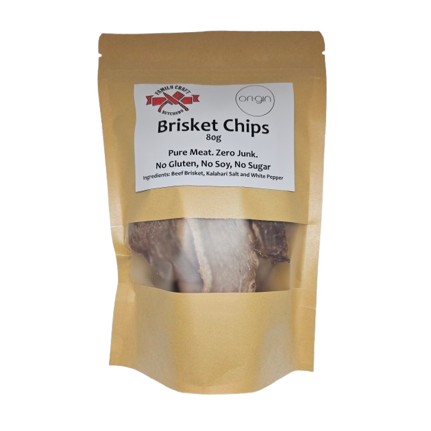 Savour the ultimate snack with our Brisket Chips: paper-thin slices of premium brisket, expertly seasoned with Kalahari Salt and a touch of white pepper, then dried to a satisfyingly crisp finish. Each chip delivers the rich flavour of quality brisket in a convenient, addictive crunch – perfect for anytime snacking.