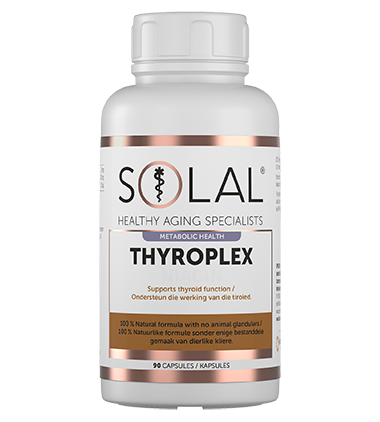 Tyrosine is a precursor for thyroid hormones, such as thyroxine and therefore may be used as a supplement in those with an underactive thyroid gland. Iodine is essential for normal thyroid function. SOLAL Thyroplex contributes to the normal production of the thyroid hormones and normal thyroid function.